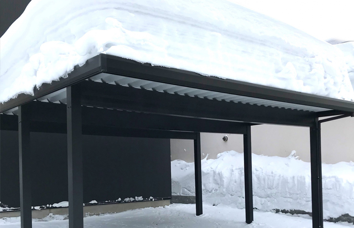 カーポートは雨や風、雪や雹などから車両を保護する役割があります。その中でも特に積雪の影響は、冬場長時間影響を受ける可能性が高いです。