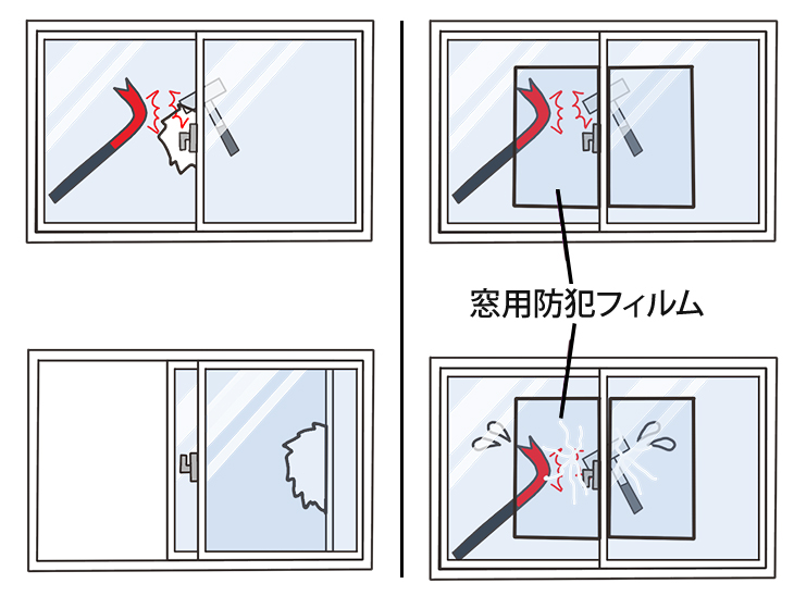 侵入対策のために割れにくくさせるだけでなく、破損した際に破片が飛び散り室内に入り込むことも防止できます。