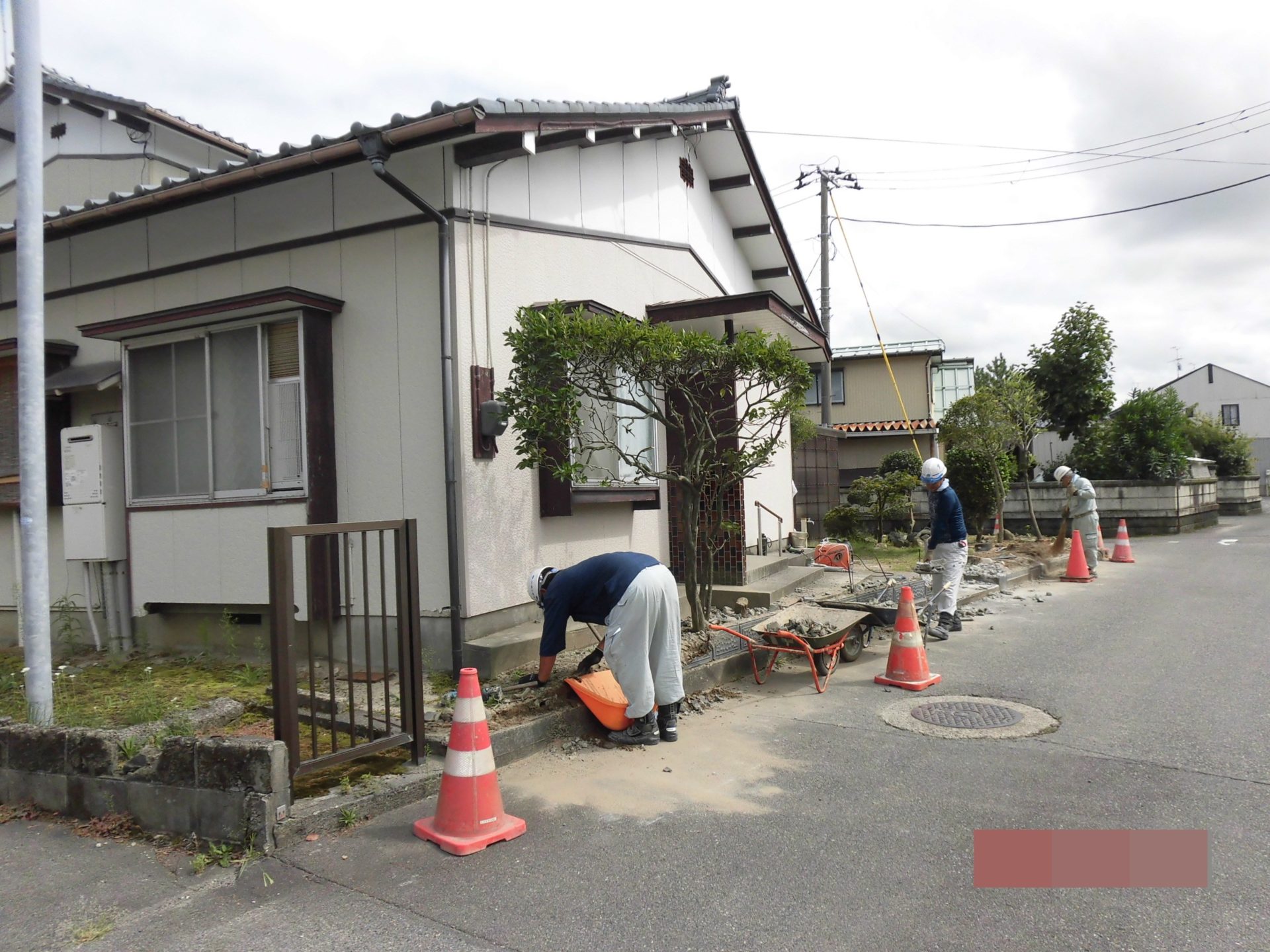 | お客様のご要望 | 年齢的に垣根や植栽の管理がきつくなった。 垣根を取り、ブロックとフェンスをつけたい。 植栽も切りたい。 2階の外壁の痛んでる部分を直したい。 玄関周辺の屋根部分や壁が傷んできたので塗装したい。 |