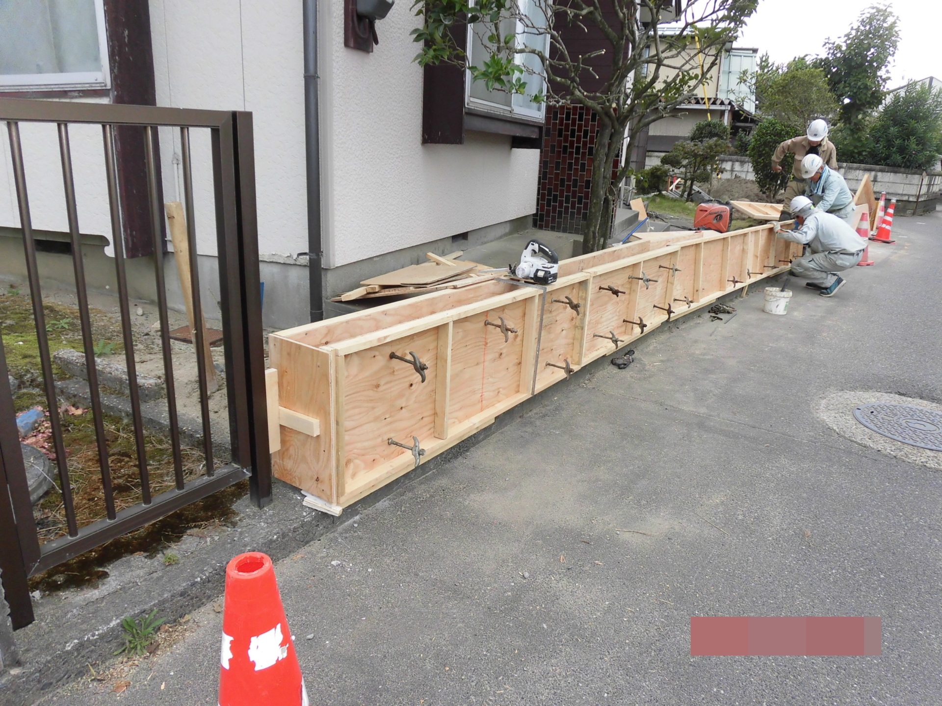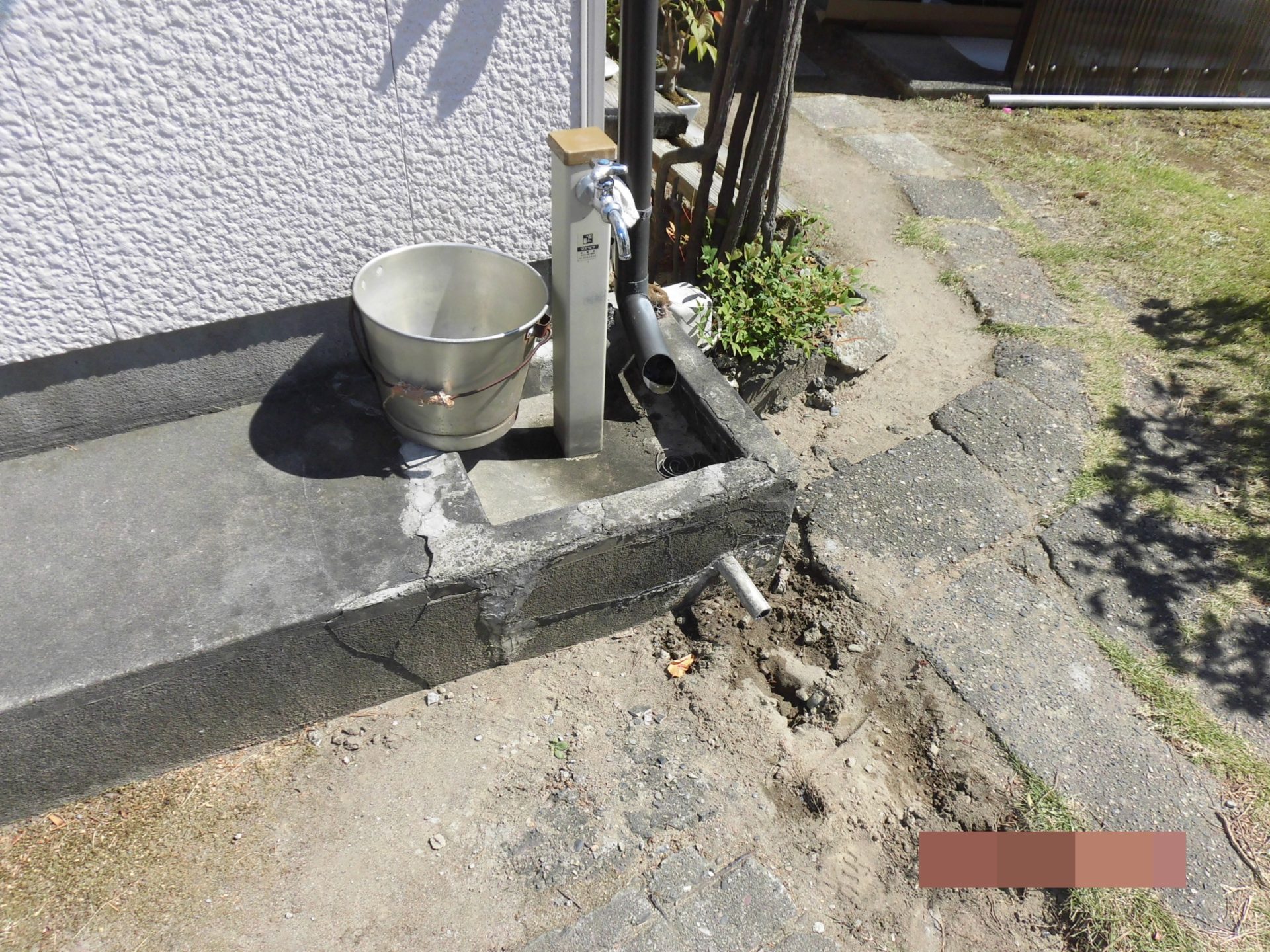 既存のブロック基礎を一部利用してコンクリート基礎とし、目隠しフェンスを設置する。 外壁等の痛んでいる部分は下地補修し、3度塗りを行う。 植栽の伐採。 外水栓部分を修繕する。 以上をご提案しました。 |