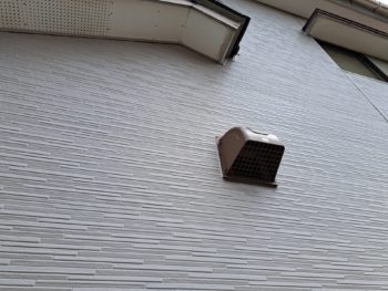 外壁診断の結果、重ね張り(カバーリング)をご提案しました。 雨樋の金具や換気フードの交換もお勧めしました。 |
