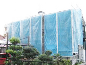 外壁工事の際は近隣のお宅にご迷惑がかからないようにガードします。